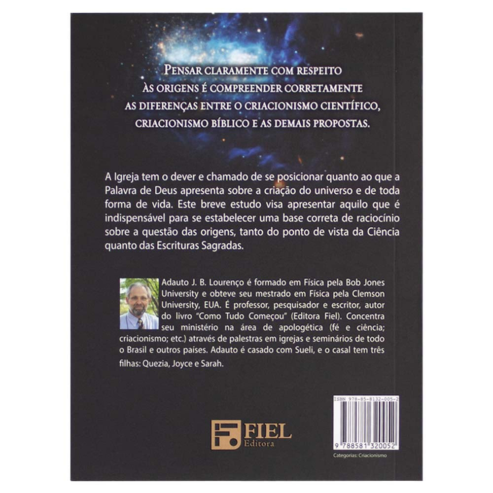 Pensar claramente com respeito às origens é compreender corretamente as diferenças entre o criacionismo científico, criacionismo bíblico e as demais propostas. A Igreja tem o dever e chamado de se posicionar quanto ao que a Palavra de Deus apresenta sobre a criação do universo e de toda forma de vida. Este breve estudo visa apresentar aquilo que é indispensável para se estabelecer uma base correta de raciocínio sobre a questão das origens, tanto do ponto de vista da Ciência quanto das Escrituras Sagradas.