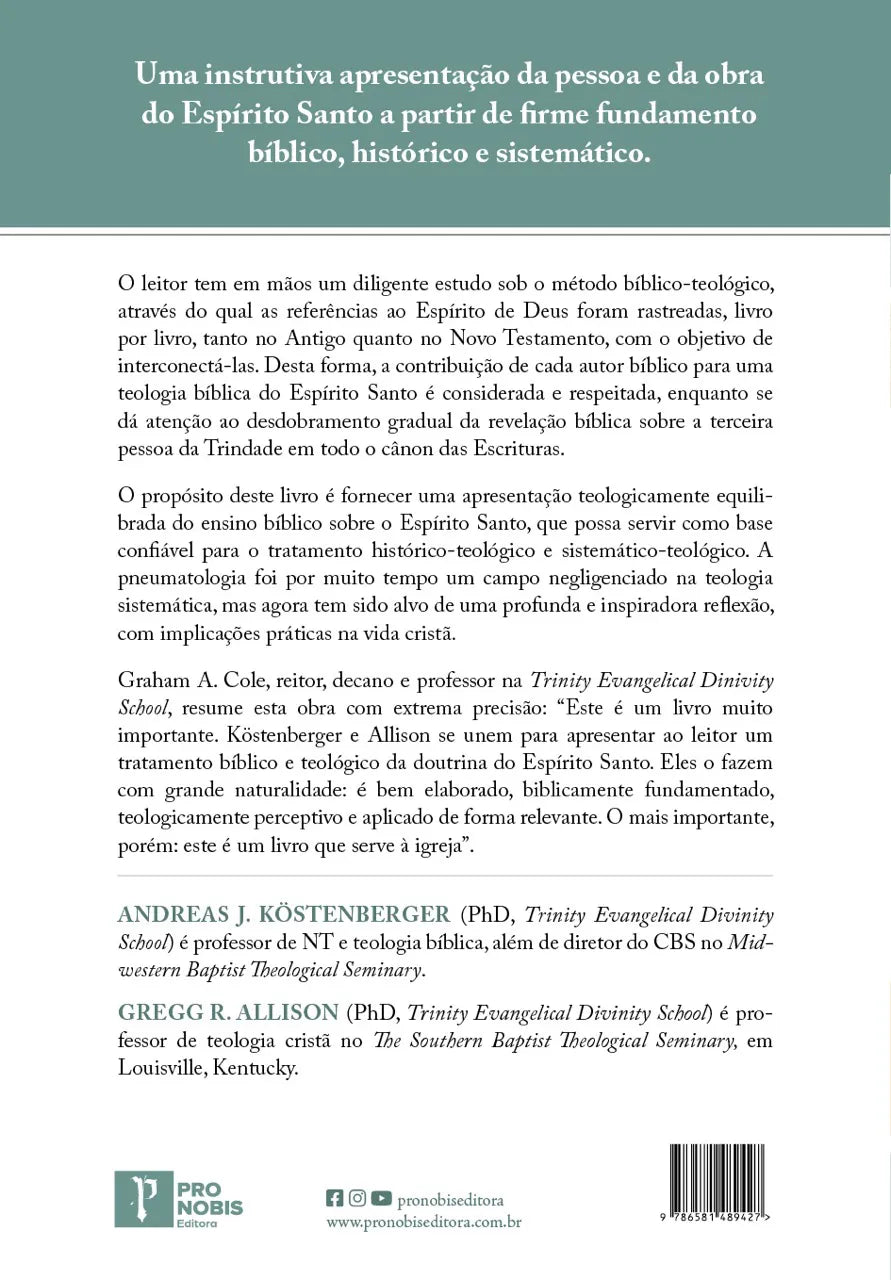 Graham A. Cole, reitor, decano e professor na Trinity Evangelical Divinity School, resume esta obra com extrema precisão: "Este é um livro muito importante. Köstenberger e Allison se unem para apresentar ao leitor um tratamento bíblico e teológico da doutrina do Espírito Santo. Eles o fazem com grande naturalidade: é bem elaborado, biblicamente fundamentado, teologicamente perceptivo e aplicado de forma relevante. O mais importante, porém: este é um livro que serve à igreja".