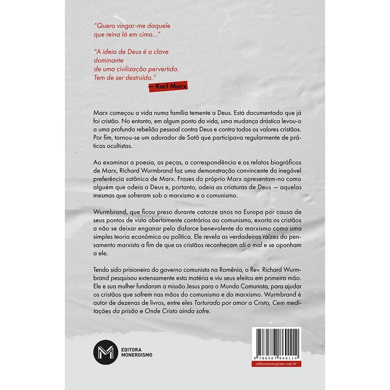 Ao examinar a poesia, as peças, a correspondência e os relatos biográficas de Marx, Richard Wurmbrand constrói um argumento convincente da inegável preferência satânica de Marx. Frases do próprio Marx o revelam como um alguém que odeia Deus e, portanto, odeia as criaturas de Deus — aquelas que sofreram sob o marxismo e o comunismo.
