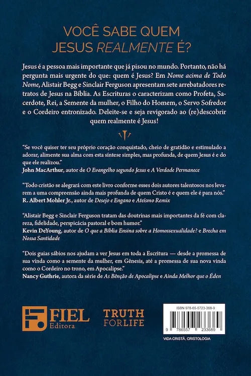 Jesus é a pessoa mais importante que já pisou no mundo. Portanto, não há pergunta mais urgente do que: quem é Jesus? Em ?Nome acima de todo nome?, Alistair Begg e Sinclair Ferguson apresentam sete arrebatadores retratos de Jesus na Bíblia. As Escrituras o caracterizam como Profeta, Sacerdote, Rei, a Semente da mulher, o Filho do Homem, o Servo Sofredor e o Cordeiro entronizado. Deleite-se e seja revigorado ao (re)descobrir quem realmente é Jesus!