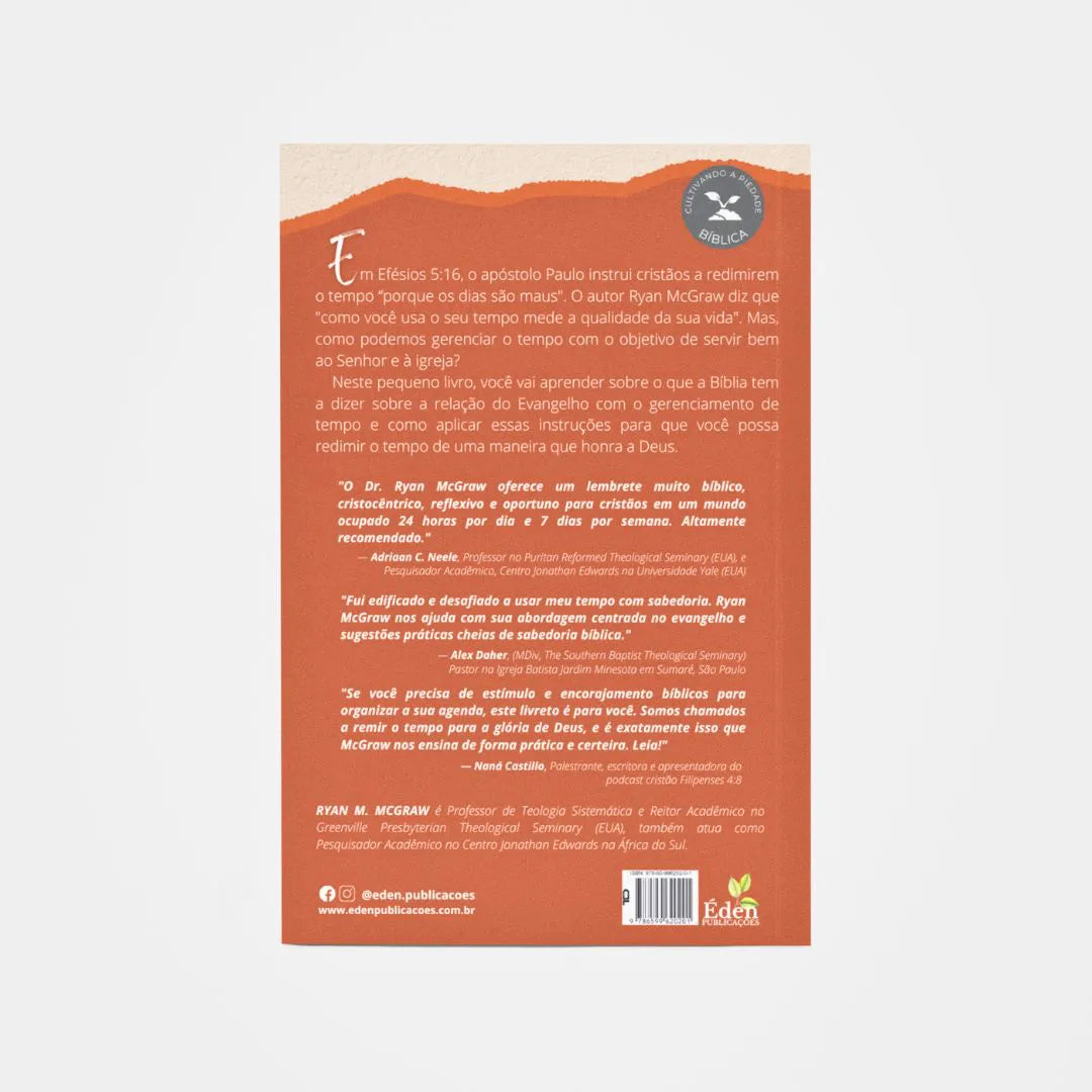 Em Efésios 5:16, o apóstolo Paulo intrui cristãos a remirem "o tempo, porque os dias são maus". O autor Ryan McGraw diz que "a maneira como você usa seu tempo define a qualidade de sua vida." Mas, como você pode administrar o seu tempo para servir bem ao Senhor e à igreja? Neste pequeno livro, você vai aprender sobre o que a Bíblia tem a dizer acerca do Evangelho como fundamento para o gerenciamento de tempo, e como aplicar seus princípios para redimir o tempo de uma forma que honre a Deus.
