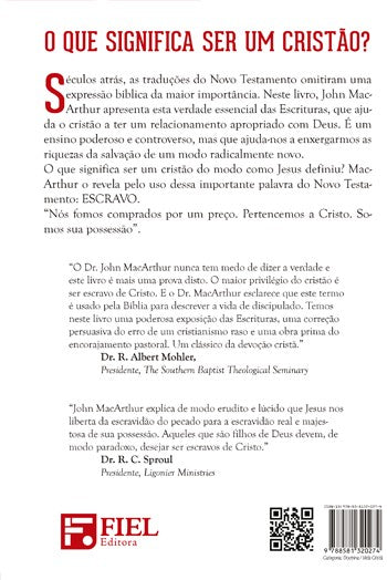 Neste livro, MacArthur resgata a correta tradução da palavra grega doulos, que é de grande importância para o bom entendimento do que é ser um cristão genuíno. Presente 124 vezes no texto original do NT, a palavra escravo (doulos), por motivos incertos, foi substituída por servo.