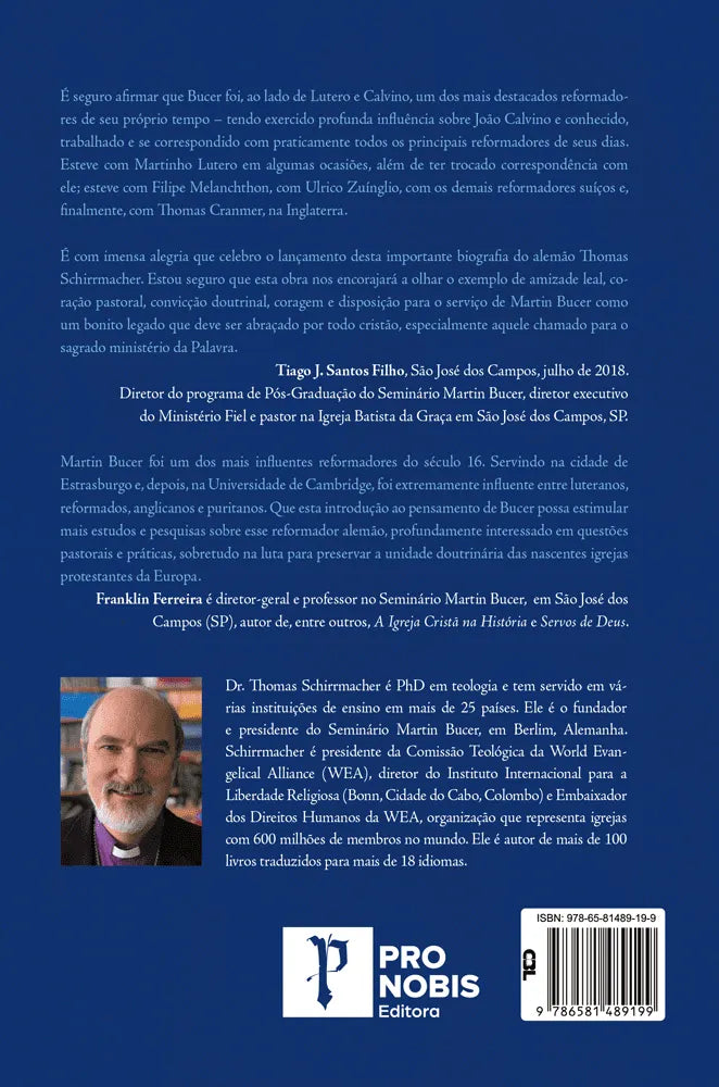 Martin Bucer foi um dos mais influentes reformadores do século 16. Servindo na cidade de Estrasburgo e, depois, na Universidade de Cambridge, foi extremamente influente entre luteranos, reformados, anglicanos e puritanos. Que esta introdução ao pensamento de Bucer possa estimular mais estudos e pesquisas sobre esse reformador alemão, profundamente interessado em questões pastorais e práticas, sobretudo na luta para preservar a unidade doutrinária das nascentes igrejas protestantes da Europa.