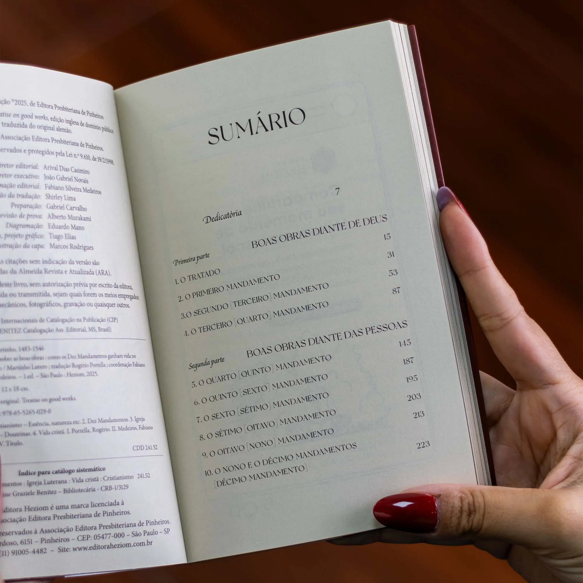 Com base nos Dez Mandamentos, Lutero nos conduz por temas como fé, obediência, família, justiça, pureza, generosidade e contentamento, revelando como a vida cristã pode (e deve) ser vivida de forma prática, piedosa e cheia de significado ― no lar, no trabalho, na igreja e na sociedade.