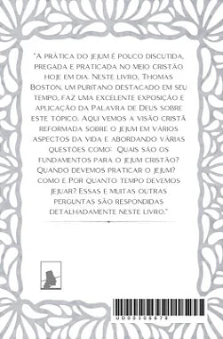 A prática do jejum é pouco discutida, pregada e praticada no meio cristão hoje em dia. Neste livro, Thomas Boston, um puritano destacado em seu tempo, faz uma excelente exposição e aplicação da Palavra de Deus sobre este tópico. Aqui vemos a visão cristã reformada sobre o jejum em vários aspectos da vida e abordando várias questões como: Quais são os fundamentos para o jejum cristão? Quando devemos praticar o jejum? como e Por quanto tempo devemos jejuar? Essas e muitas outras perguntas são respondidas detalhadamente neste livro.