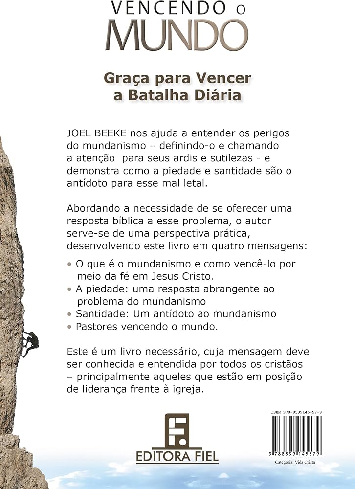 Joel Beeke nos ajuda a entender os perigos do mundanismo - definindo-o e chamando a atenção para seus ardis e sutilezas - e demonstra como a piedade e santidade são o antídoto para esse mal letal. Abordando a necessidade de se oferecer uma resposta bíblica a esse problema, o autor serve-se de uma perspectiva prática, desenvolvendo este livro em quatro mensagens:O que é o mundanismo e como vencê-lo por meio da fé em Jesus Cristo,A piedade: Uma resposta abrangente so problema do mundanismo,Santidade: um antídoto ao mundanismo,Pastores vencendo o mundo,Este é um livro necessário, cuja mensagem deve ser conhecida e entendida por todos os cristãos - principalmente aqueles que estão em posição de liderança frente à igreja.