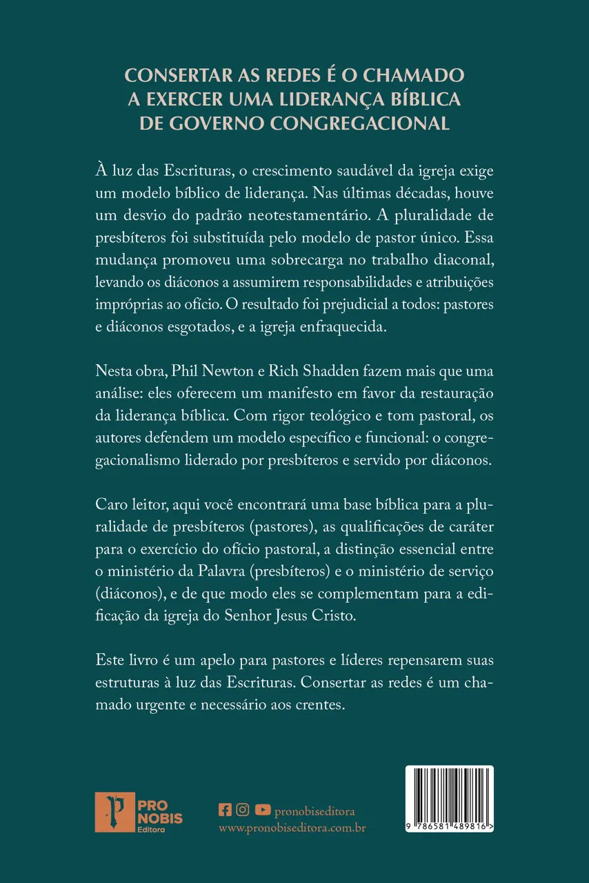 Nesta obra, Phil Newton e Rich Shadden fazem mais que uma análise: eles oferecem um manifesto em favor da restauração da liderança bíblica. Com rigor teológico e tom pastoral, os autores defendem um modelo específico e funcional: o congregacionalismo liderado por presbíteros e servido por diáconos.
