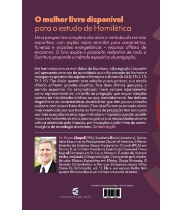 Em harmonia com os mandatos da Escritura, tal pregação [expositiva] apresenta uma voz de autoridade que não procede do homem e assegura respostas não sujeitas a fantasias culturais (Is 40.8; 1Ts 2.13; Tt 2.15). Tão óbvia quanto essa solução possa parecer, sua ampla difusão enfrenta grandes desafios. Nas duas últimas gerações, o sermão expositivo foi estigmatizado (nem sempre injustamente) como representante de um estilo de pregação que requer citações estéreis de trivialidades bíblicas ou que, indevidamente, faz defesas dogmáticas de características doutrinárias que têm pouca conexão evidente com nossas lutas diárias. Esse desafio tem se tornado ainda mais acentuado por que todas as formas de pregação têm sido cada vez mais acusadas de empregar métodos antiquados que são acadêmicos e entediantes de mais para os gostos e as necessidades de uma cultura orientada pelo impacto, por inovações e pelo ritmo da comunicação e da tecnologia modernas. Da Introdução Chegou o tempo de restaurar o sermão expositivo. Não apenas reivindicar uma voz necessária de autoridade bíblica para a nossa época, mas também para resgatar a abordagem expositiva de pregadores inconscientes (ou descuidados) de forças culturais, recursos comunicativos e princípios bíblicos que devem ser usados para conectar os presentes propósitos da Palavra de Deus e as pessoas. Este livro pretende fornecer uma abordagem que satisfaça a essa reivindicação e resgate. Inicialmente, o texto oferece instrução prática que liga o sermão expositivo às verdades da Escritura. Ao mesmo tempo em que o livra de atitudes ligadas à tradição e de práticas de comunicação ingênuas que podem desnecessariamente negar aos pastores e aos membros da igreja o poder e a esperança de uma mensagem acessível da Palavra de Deus.Da Introdução