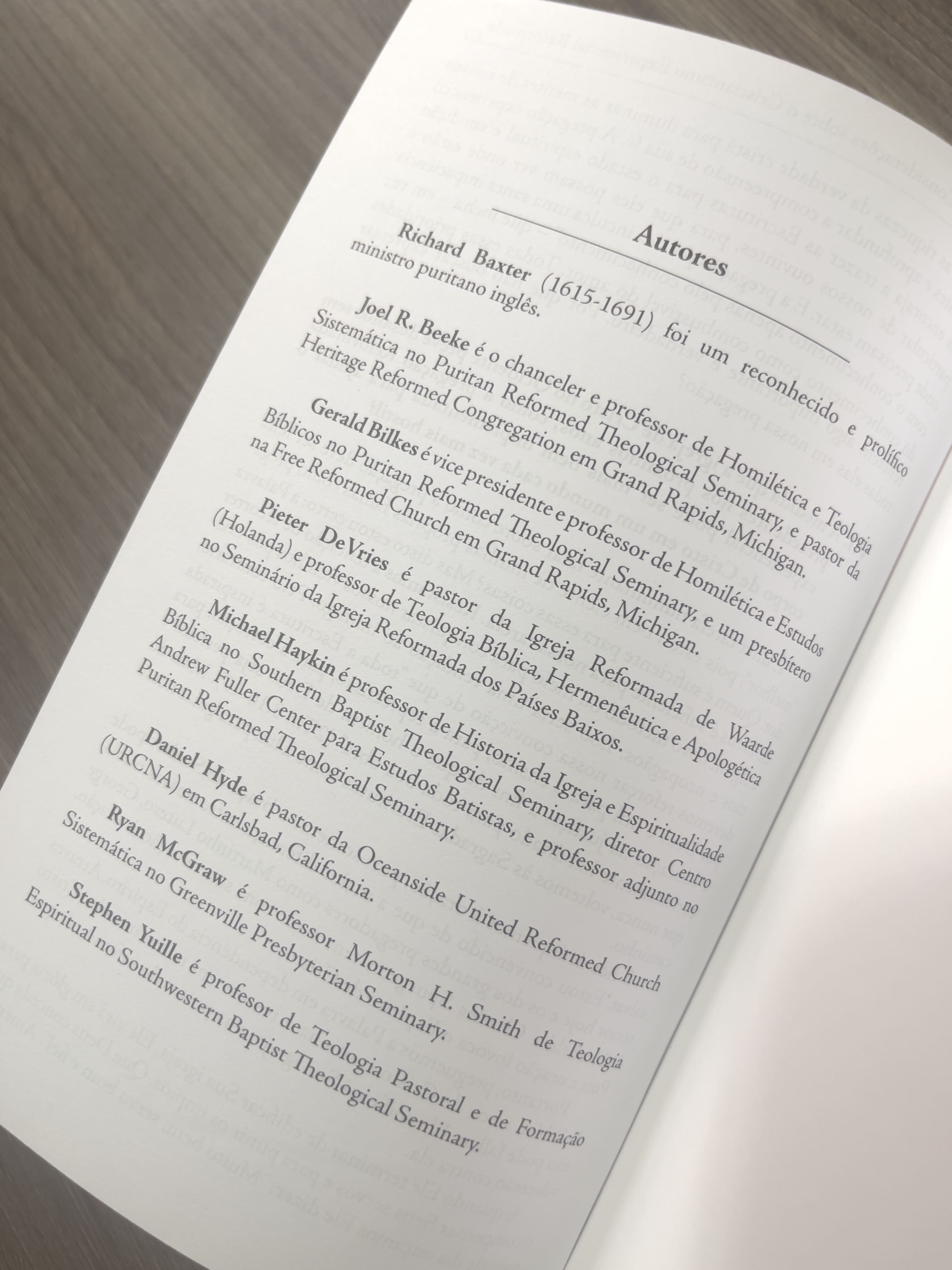 O Rev. Richard Baxter foi um conhecido pastor reformado que viveu na Inglaterra, de 1615 à 1691. Seus escritos, pregações e vida produziram um inegável reavivamento espiritual na cidade de Kidderminster, onde realizou o seu ministério. Quando chegou à cidade, eram poucos os crentes e duvidosas as suas conversões. Algum tempo depois, entretanto, o templo de sua igreja teve que ser aumentado -e ainda assim não comportava mais as pessoas, que subiam nas janelas para ouvir suas pregações; muitas ruas da cidade tiveram todos os seus moradores convertidos; podia-se ouvir centenas de pessoas cantando hinos de louvor em plena rua e as conversões davam provas suficientes de serem sinceras e profundas.