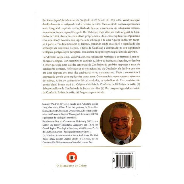 Em Uma Exposição Moderna da Confissão de Fé Batista de 1689, o Dr. Waldron expõe detalhadamente os artigos de fé dos batistas de 1689. Cada capítulo do livro apresenta o texto integral do capítulo da Confissão de Fé a ser examinado. As referências bíblicas, no entanto, foram expandidas pelo Dr. Waldron, indo além do texto original da Confissão de 1689. Antes do comentário propriamente dito, cada capítulo foi organizado com um esboço do conteúdo.