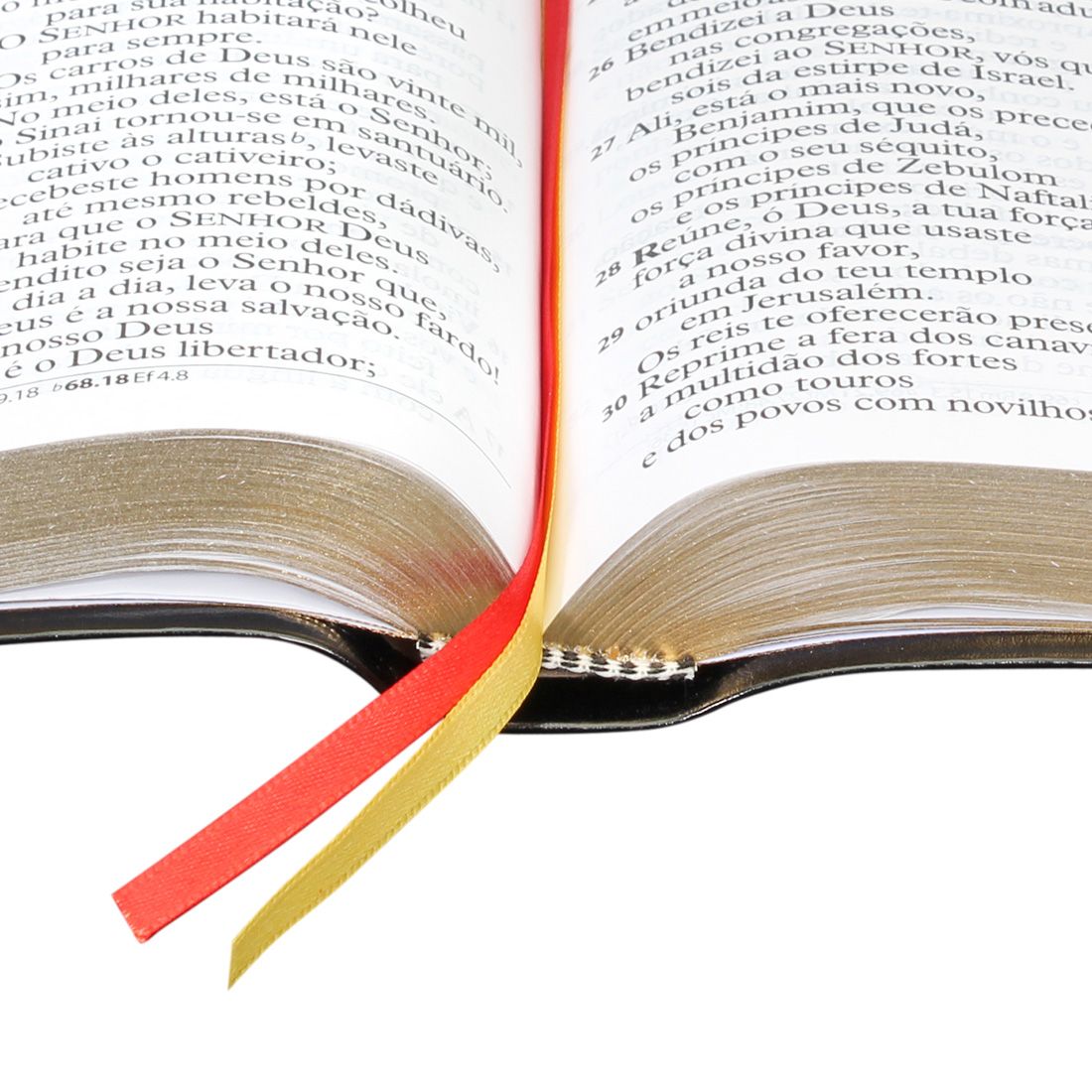 Esta edição da Bíblia Sagrada traz as Palavras de Jesus destacadas em vermelho, possui letras extragigantes que proporcionam mais conforto à leitura da Palavra de Deus e índice digital que auxilia a busca dos livros bíblicos.