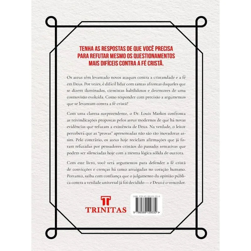 Com uma clareza surpreendente, o Dr. Louis Markos confronta as reivindicações propostas pelos ateus modernos de que há novas evidências que refutam a existência de Deus. Na verdade, o leitor perceberá que as "provas" apresentadas não são tão inovadoras assim. Pelo contrário, os ateus hoje reciclam afirmações que já foram refutadas por pensadores cristãos do passado: tentativas que podem ser silenciadas hoje com a mesma lógica sólida do passado.