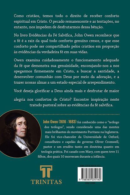 Como cristãos, temos todo o direito de receber conforto espiritual em Cristo. O pecado remanescente e as tentações, no entanto, nos impedem de desfrutarmos dessa bênção. No livro Evidências da Fé Salvífica, John Owen reconhece que a fé é a raiz da qual todo conforto genuíno cresce, e que esse conforto pode ser compartilhado pelos cristãos em proporção às evidências da verdadeira fé em suas vidas.