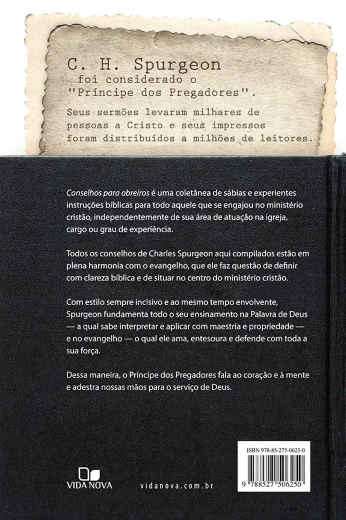 Todos os conselhos de Charles Spurgeon aqui compilados estão em plena harmonia com o evangelho, que ele faz questão de definir com clareza bíblica e de situar no centro do ministério cristão.