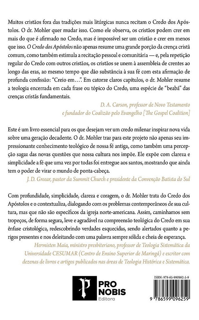 Pude perceber rapidamente que a declaração do dr. Mohler, na Introdução, de que “todos os cristãos creem em mais do que está contido no Credo dos Apóstolos, mas nenhum pode crer em menos do que contém”, é crucial para o próprio propósito deste livro. Esse resumo clássico da fé cristã apareceu pela primeira vez no século IV d.C. e, desde então, tem sido memorizado, recitado e incluído na adoração dos cristãos.