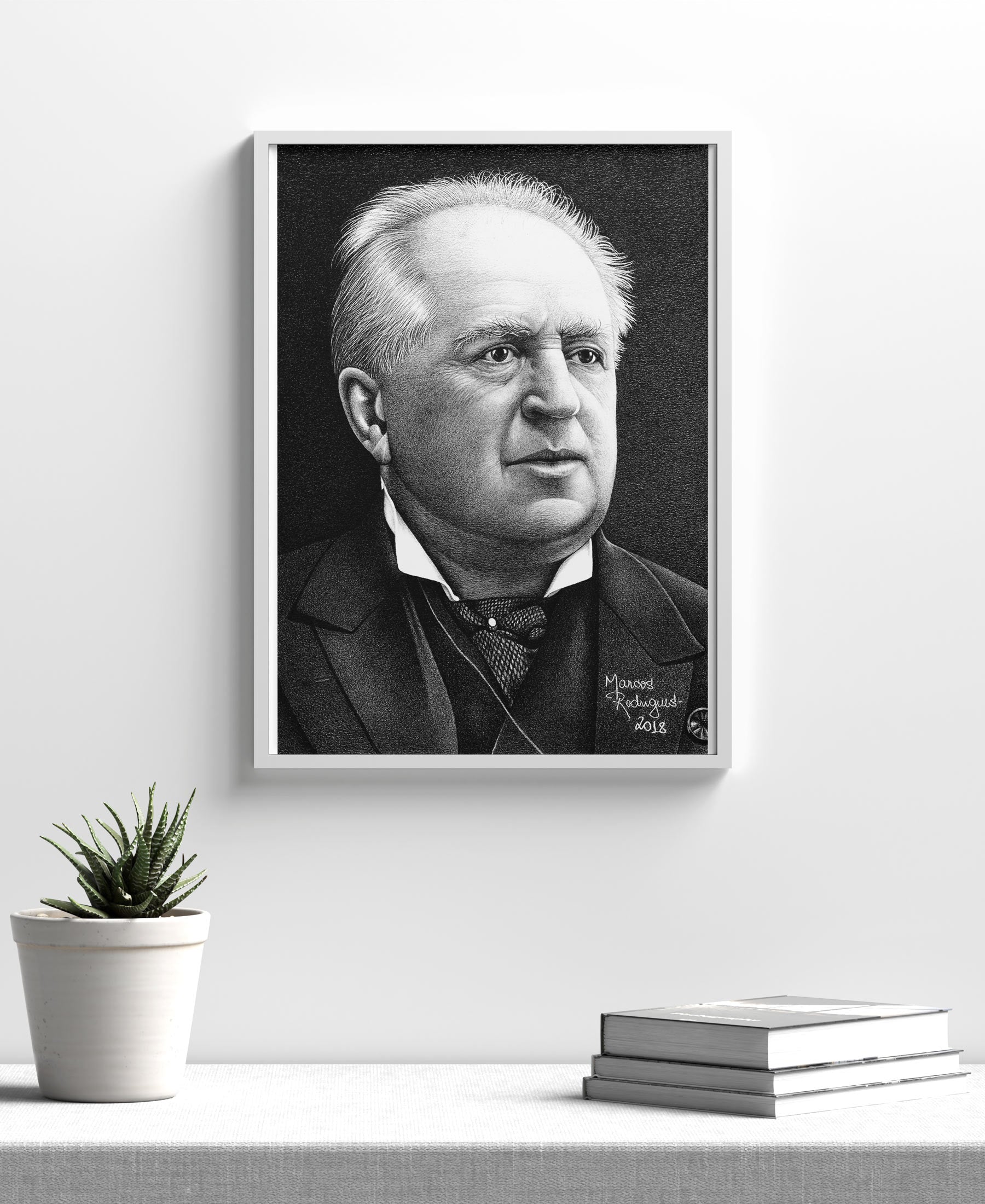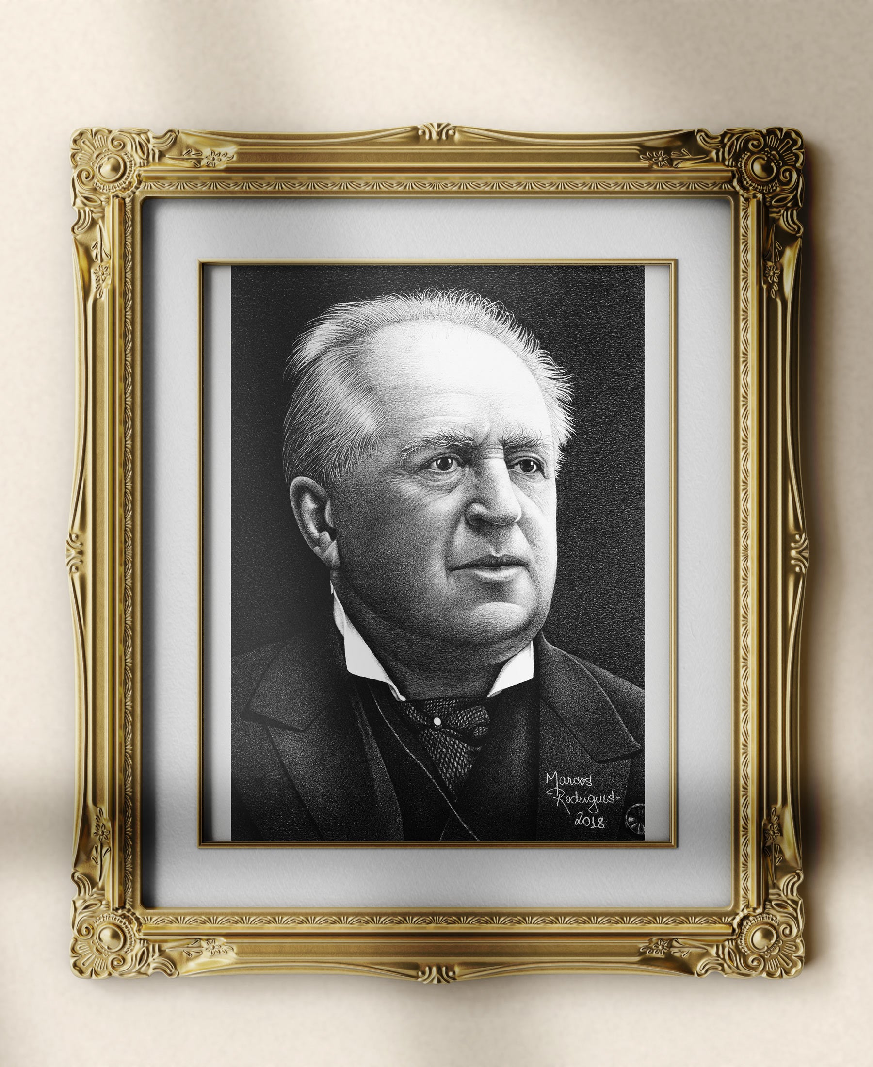 Print decorativo exclusivo com o retrato de Abraham Kuyper (1837-1920), estadista neerlandês, pastor, jornalista e teólogo reformado, reconhecido por sua contribuição ao neocalvinismo e pela famosa declaração de que “não há um centímetro quadrado da criação sobre o qual Cristo não tenha clamado: ‘é meu!’”. Wikipedia+3theforum.calvinseminary.edu+3Evangel Classical School+3