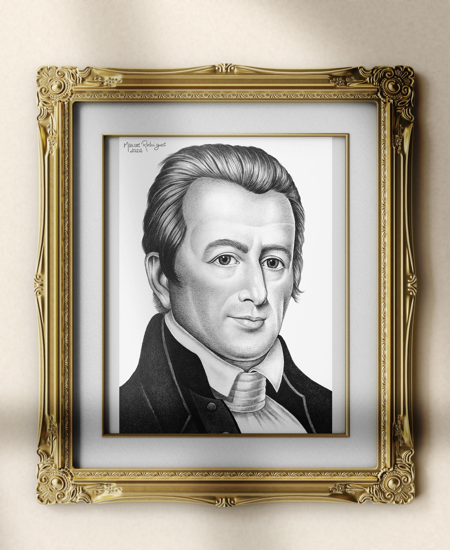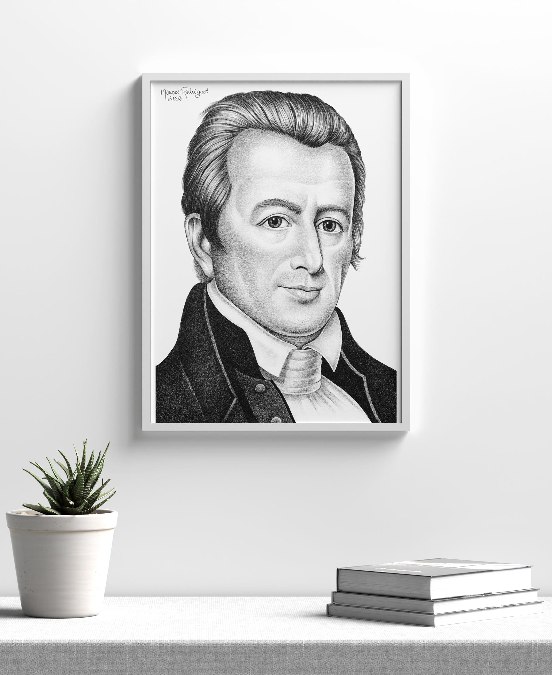 Print decorativo exclusivo com o retrato de Adoniram Judson (1788-1850), missionário batista americano reconhecido como um dos pioneiros na evangelização na Birmânia (atual Myanmar). Wikipedia+2IMB+2
