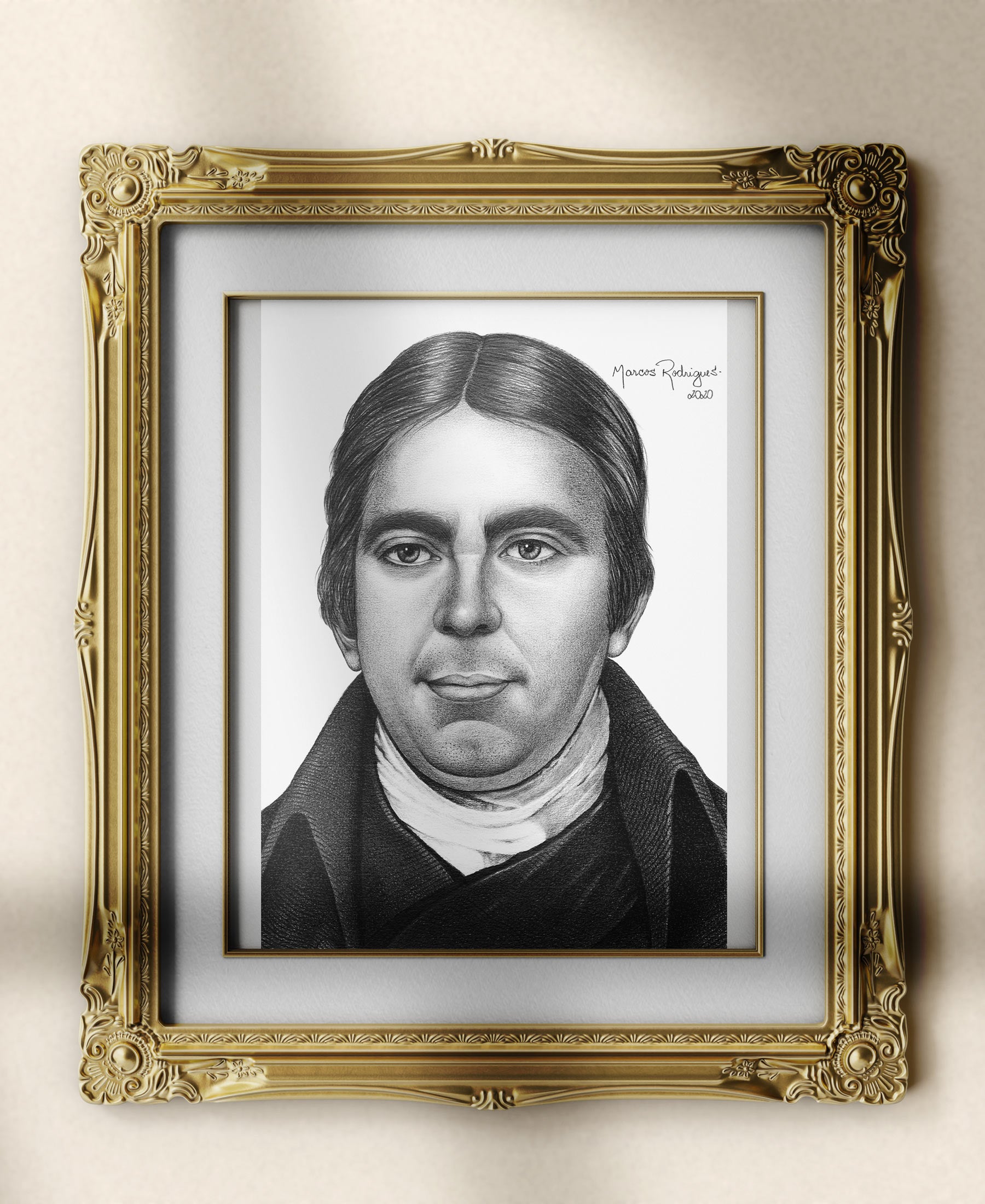 Print artístico exclusivo com o retrato de Andrew Fuller (1754–1815), teólogo e pastor batista inglês conhecido por seu papel fundamental no avivamento teológico e missionário do século XVIII. Fuller foi secretário da Baptist Missionary Society e amigo próximo de William Carey, sendo considerado um dos principais articuladores da teologia missionária reformada.