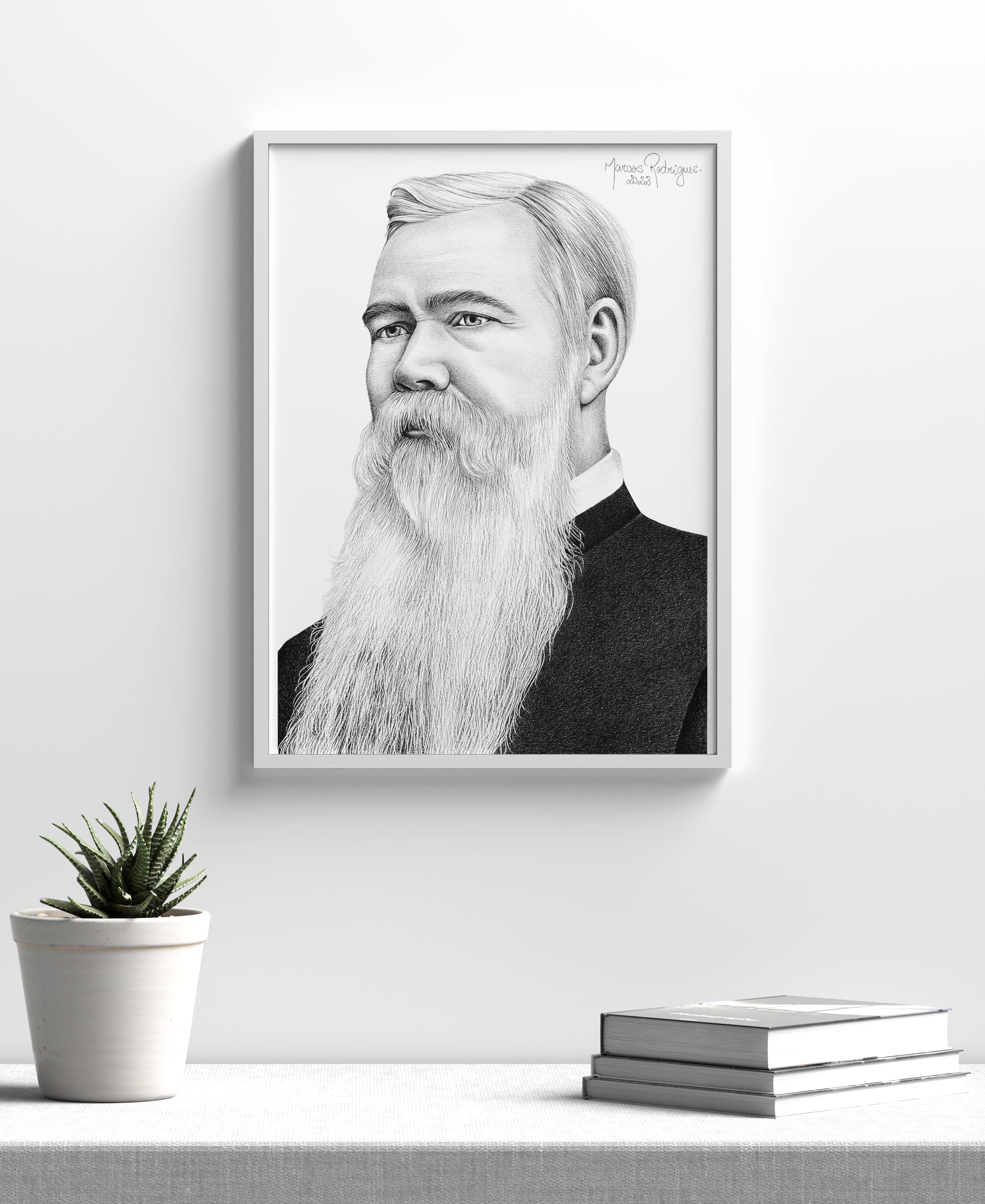 Print artístico exclusivo com o retrato de B. H. Carroll (1843-1914), pastor batista americano, autor prolífico e fundador da Southwestern Baptist Theological Seminary, além de professor e defensor firme das Escrituras e da educação cristã. (<a href="https://en.wikipedia.org/wiki/Benajah_Harvey_Carroll?utm_source=chatgpt.com" title="Benajah Harvey Carroll">Wikipedia</a>)