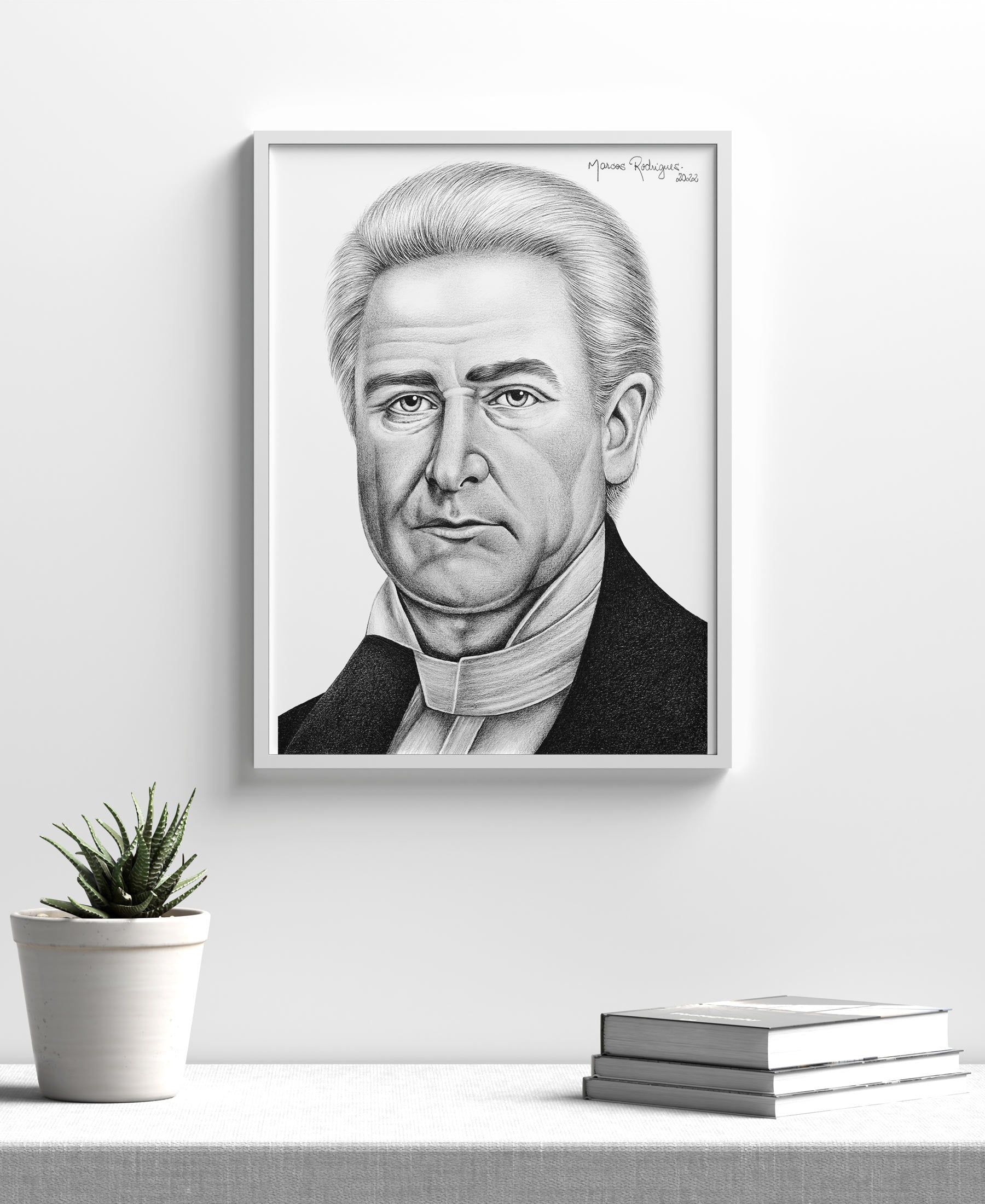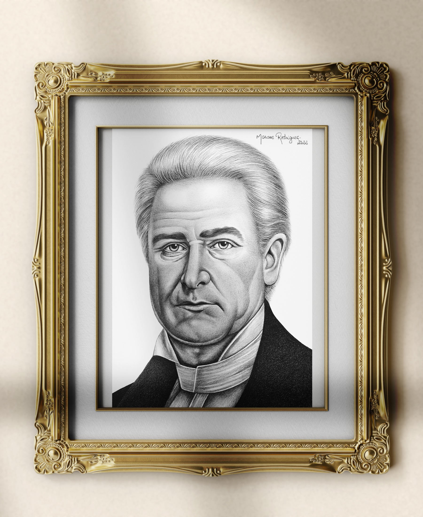Print artístico exclusivo com o retrato de Basil Manly Jr. (1825-1892), pastor, professor e educador batista americano que se destacou como um dos primeiros professores da Southern Baptist Theological Seminary e presidente da Georgetown College, sendo figura importante na história da educação batista. (<a href="https://en.wikipedia.org/wiki/Basil_Manly_Jr.?utm_source=chatgpt.com" title="Basil Manly Jr.">Wikipedia</a>)