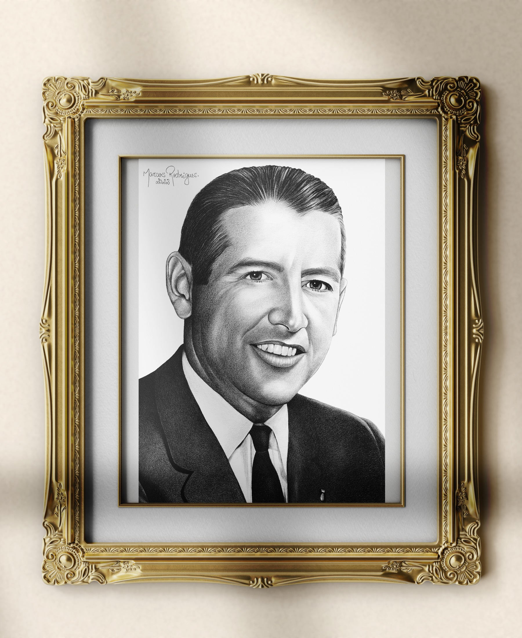 Print artístico exclusivo com o retrato de Ernest C. Reisinger (1919-2004), pastor batista reformado americano que desempenhou papel-chave no âmbito das doutrinas da graça e na recuperação histórica do calvinismo entre os batistas do Sul dos Estados Unidos. Wikipedia+2Banner of Truth UK+2