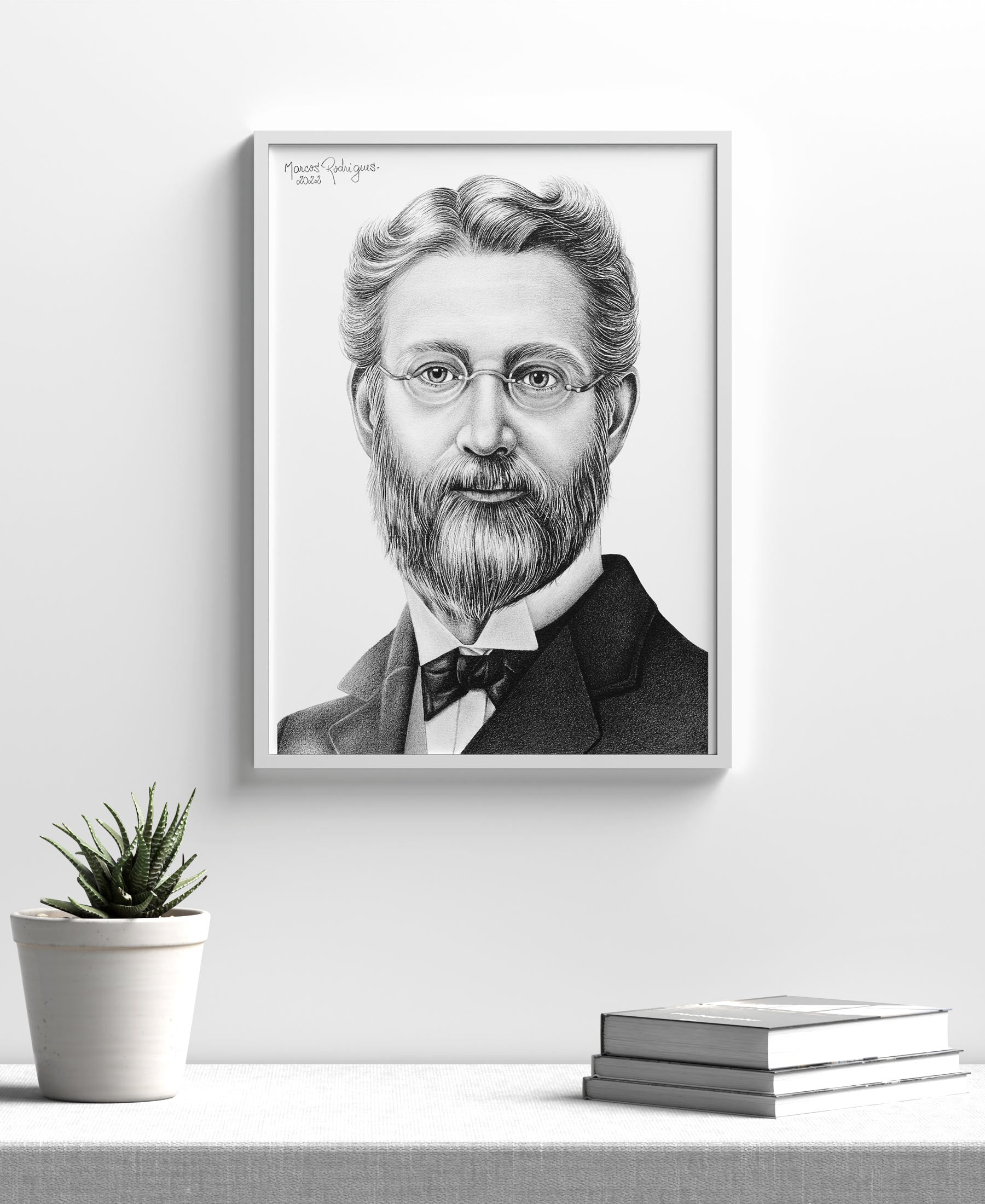 Print artístico exclusivo com o retrato de Geerhardus Vos (1862 – 1949), teólogo calvinista neerlandês-americano considerado um dos mais importantes representantes da denominada “Teologia de Princeton” e por muitos chamado “pai da teologia bíblica reformada”. (<a href="https://en.wikipedia.org/wiki/Geerhardus_Vos?utm_source=chatgpt.com" title="Geerhardus Vos">Wikipedia</a>)