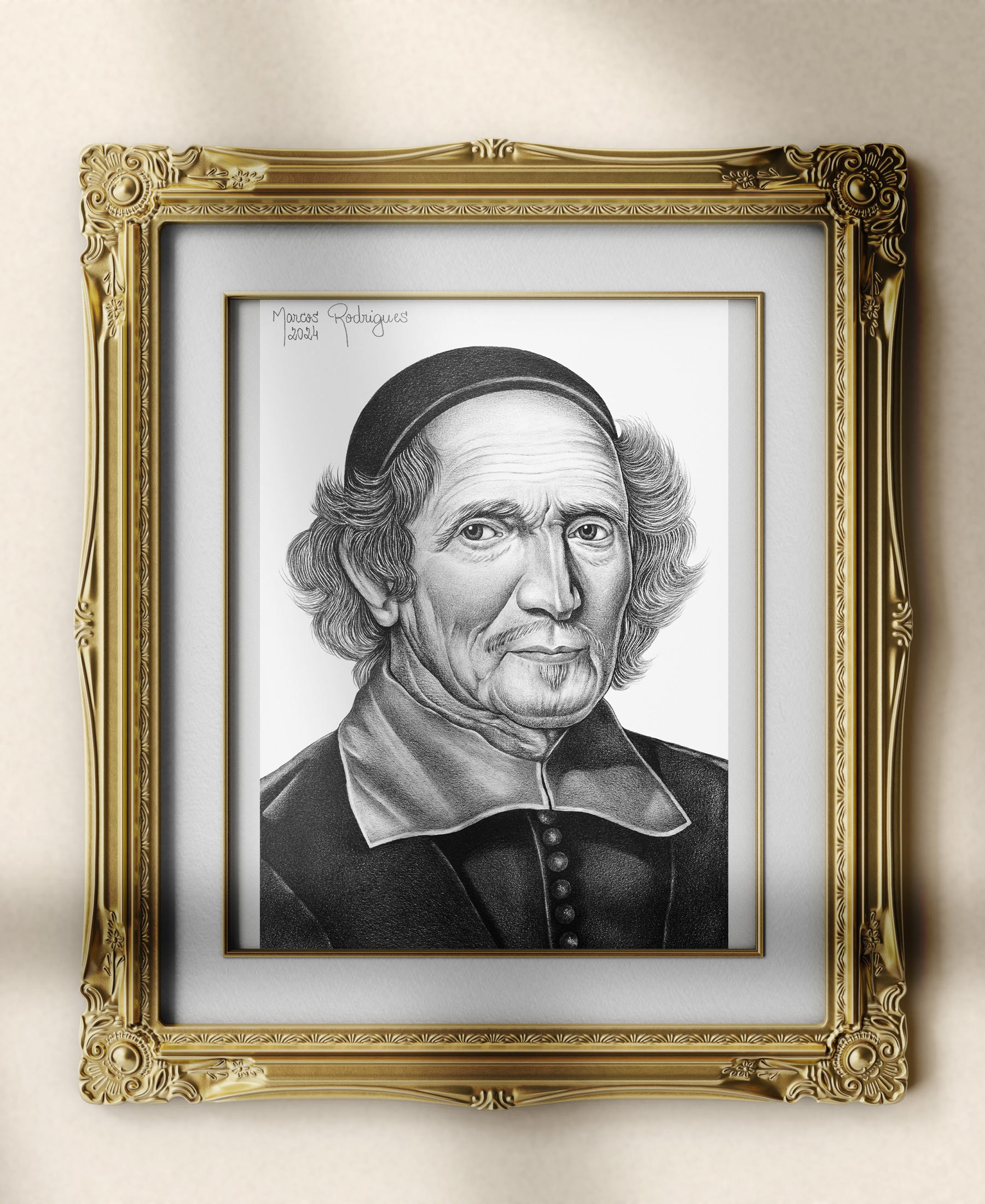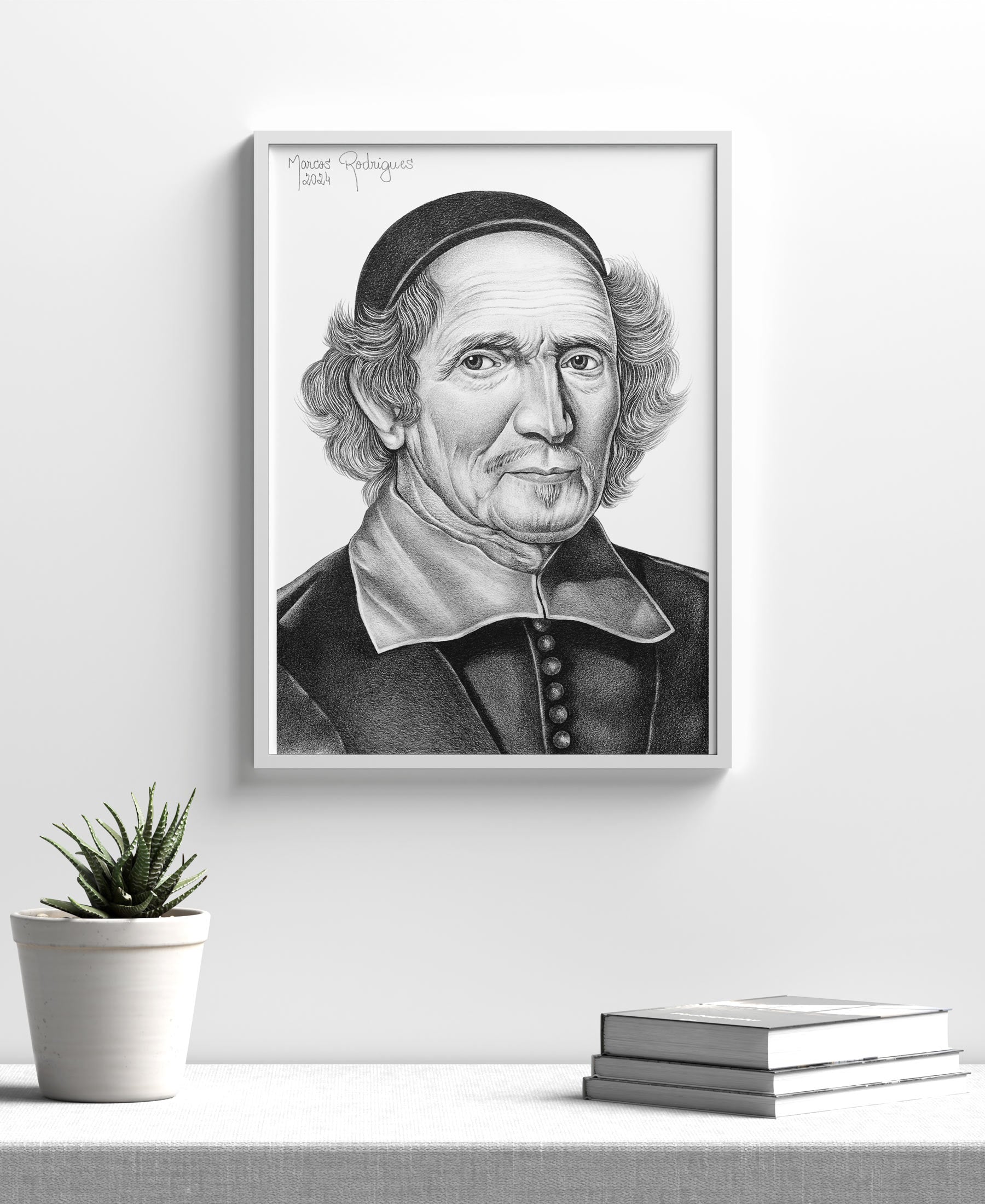 Esta arte é resultado da parceria entre a Livraria Defesa do Evangelho e o desenhista Marcos Rodrigues, que reproduz com autenticidade a figura histórica de Voetius, preservando o estilo clássico e a expressão reverente do teólogo holandês.