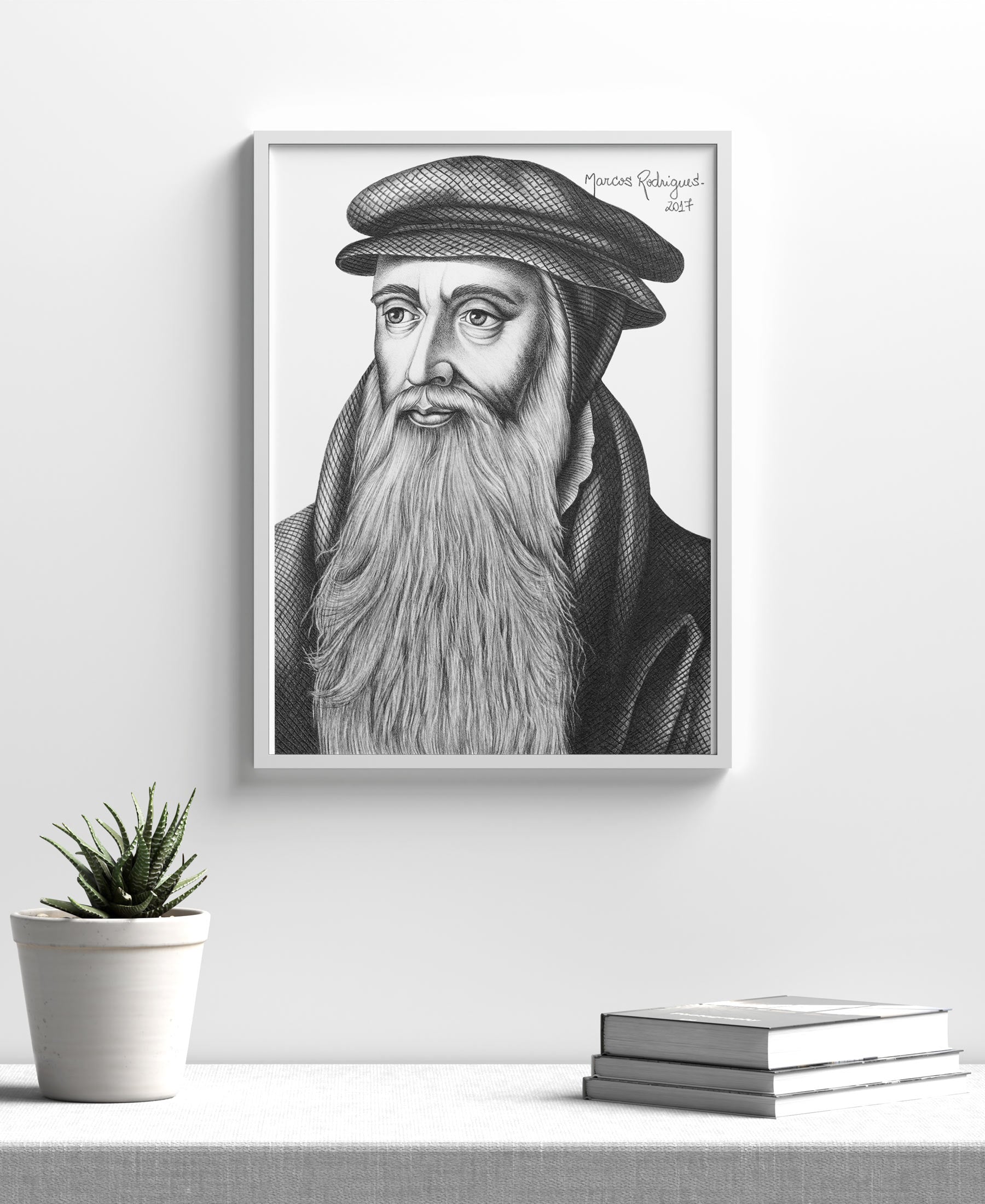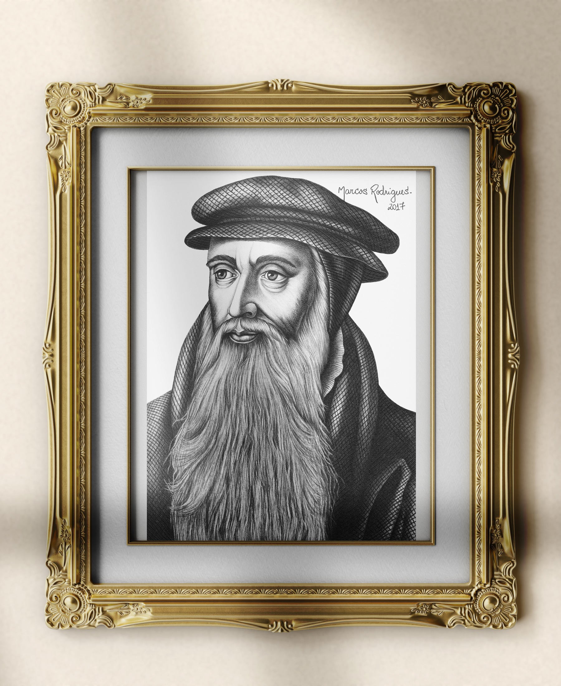 Print artístico exclusivo com o retrato de John Knox (1514 – 1572), reformador escocês, pregador e teólogo, considerado o fundador da Igreja Presbiteriana.