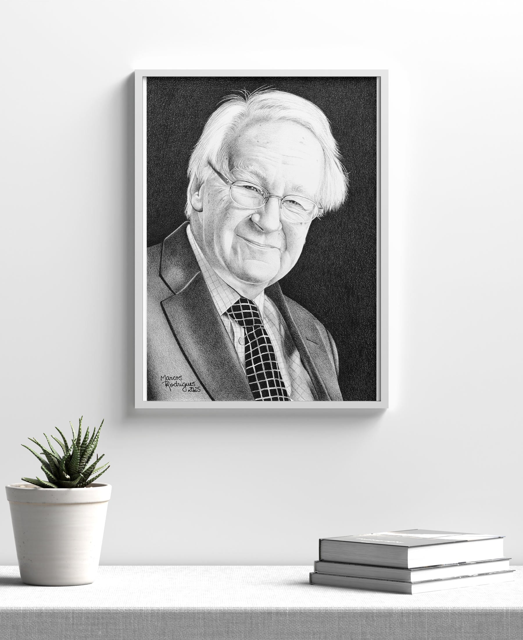 Print artístico exclusivo com o retrato de John Piper (n. 1946), pastor batista reformado, escritor e professor de teologia, amplamente conhecido por seu ensino centrado na soberania de Deus e na alegria cristã em Cristo.