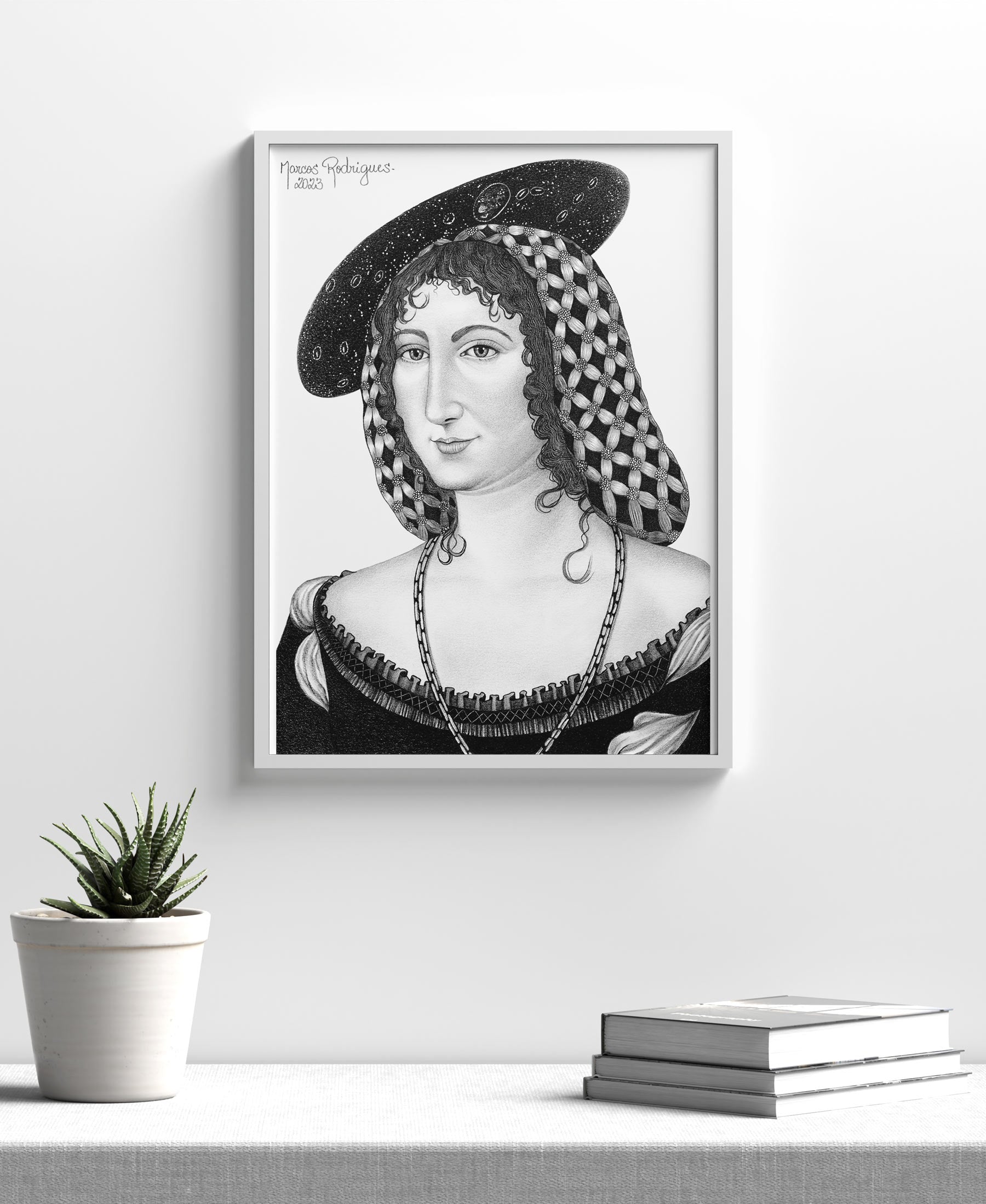 Print artístico exclusivo com o retrato de Marguerite de Navarre (1492 – 1549), princesa francesa, escritora e protetora dos primeiros reformadores protestantes na França.