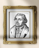 Print artístico exclusivo com o retrato de Martinho Lutero (1483 – 1546), teólogo, pastor e reformador alemão, reconhecido como o precursor da Reforma Protestante.